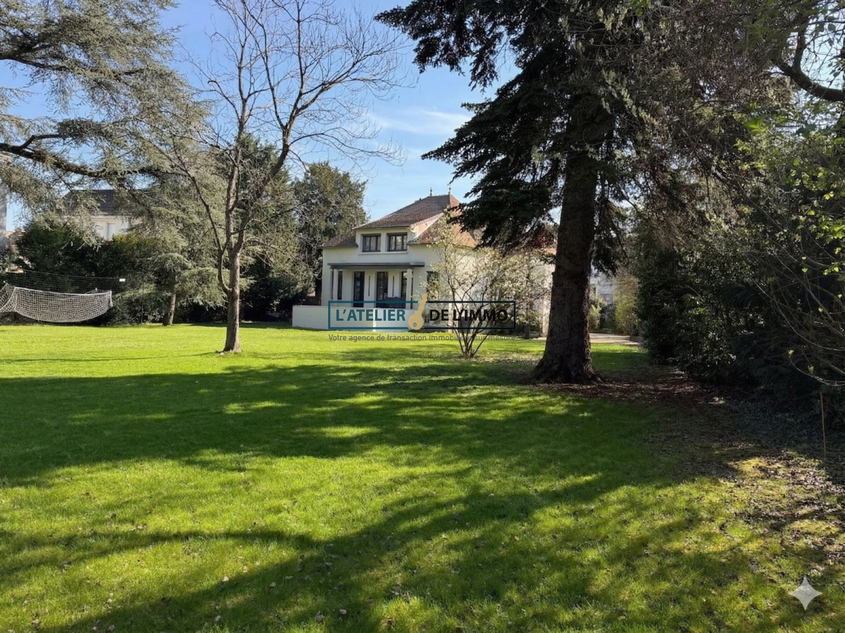 À l'arrière, à l'abri des regards, la maison s'ouvre sur un magnifique jardin arboré et paysager, prolongé par une vaste terrasse invitant à la détente. À l'avant, une cour d'accueil sécurisée par un portail électrique permet le stationnement aisé de plusieurs véhicules.
