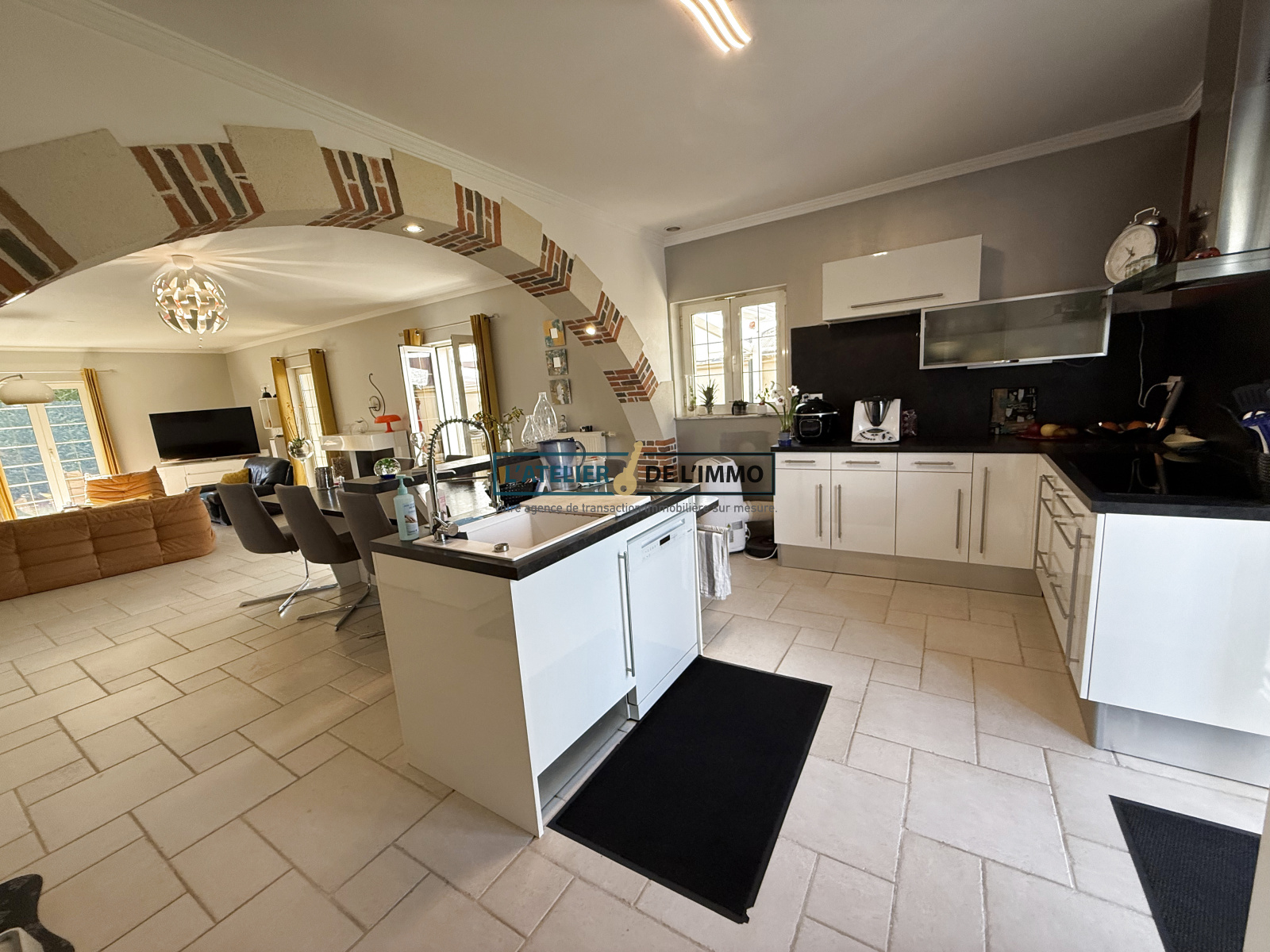 La maison développe une surface habitable de 146 m² comprenant une vaste pièce de vie de plus de 60 m², baignée de lumière grâce à ses grandes baies vitrées ouvrant sur le jardin.